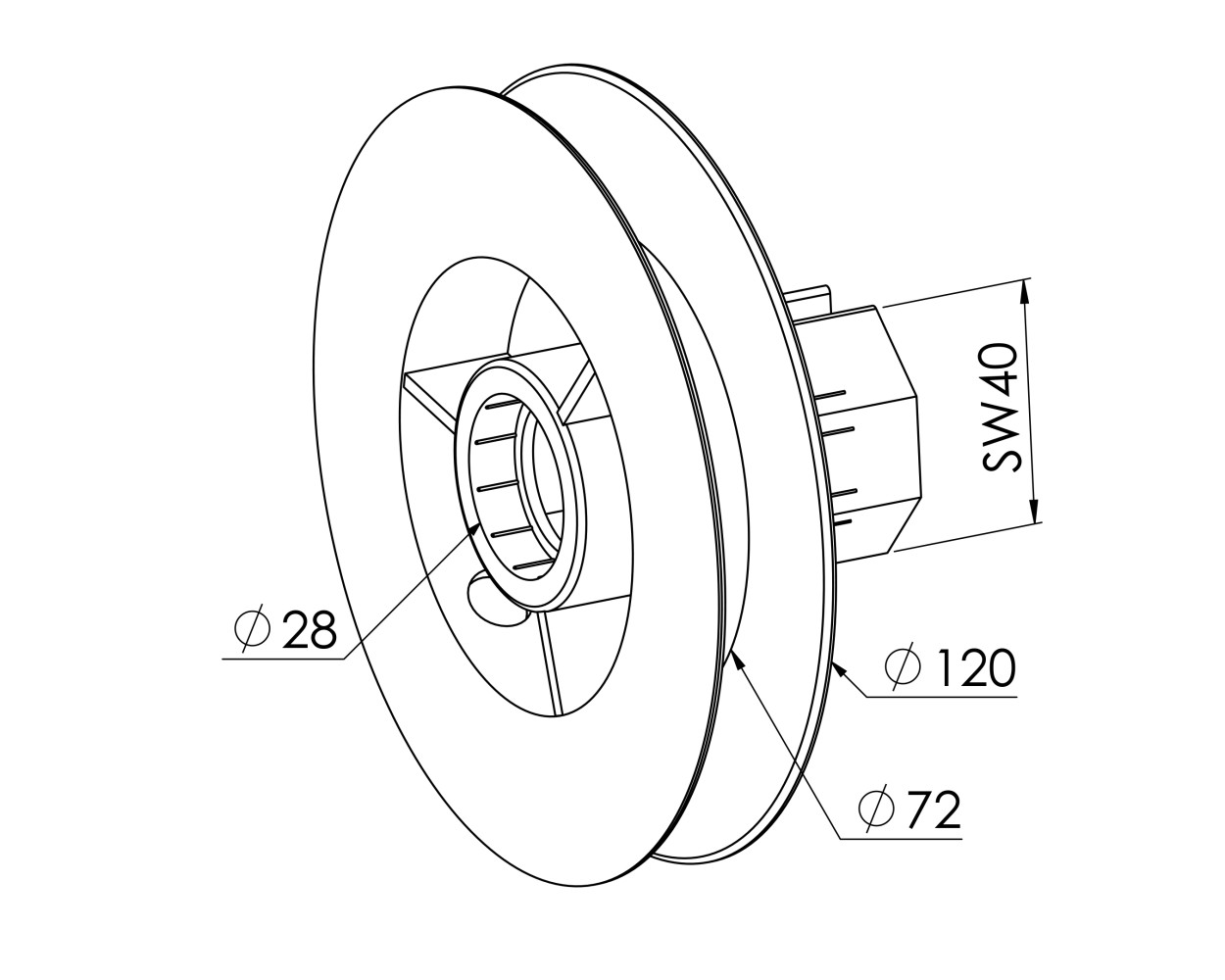 Eckermann Mini-Schnur-Scheibe SW40 (18550)Durchmesser 120 mmfür Kugellager 28 mm